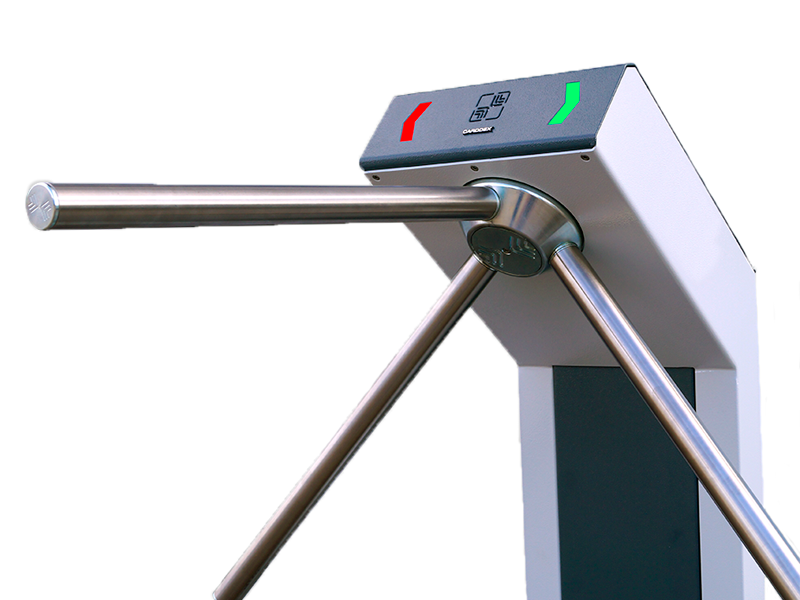 Конструкция этих устройств включает в себя 3 штанги, располагающиеся под углом 120 градусов друг относительно друга. Все штанги вращаются на шине. Эксплуатироваться такие механизмы могут в любых помещениях и в проемах разного вида. Блокировка трипода будет снята охранником или с помощью карты-ключа посетителя.